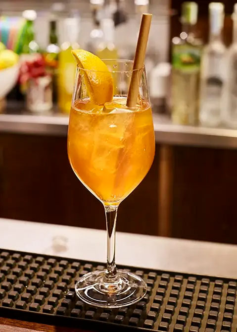 Fill a large wine glass with ice, pour in Sibilla Gold followed by Aperol and then top up with soda water. Garnish with orange slice and enjoy it!
